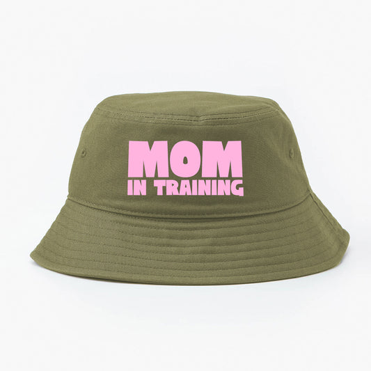 mom in training pink bucket hat