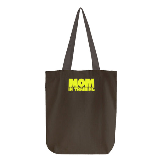mom in training black tote bag