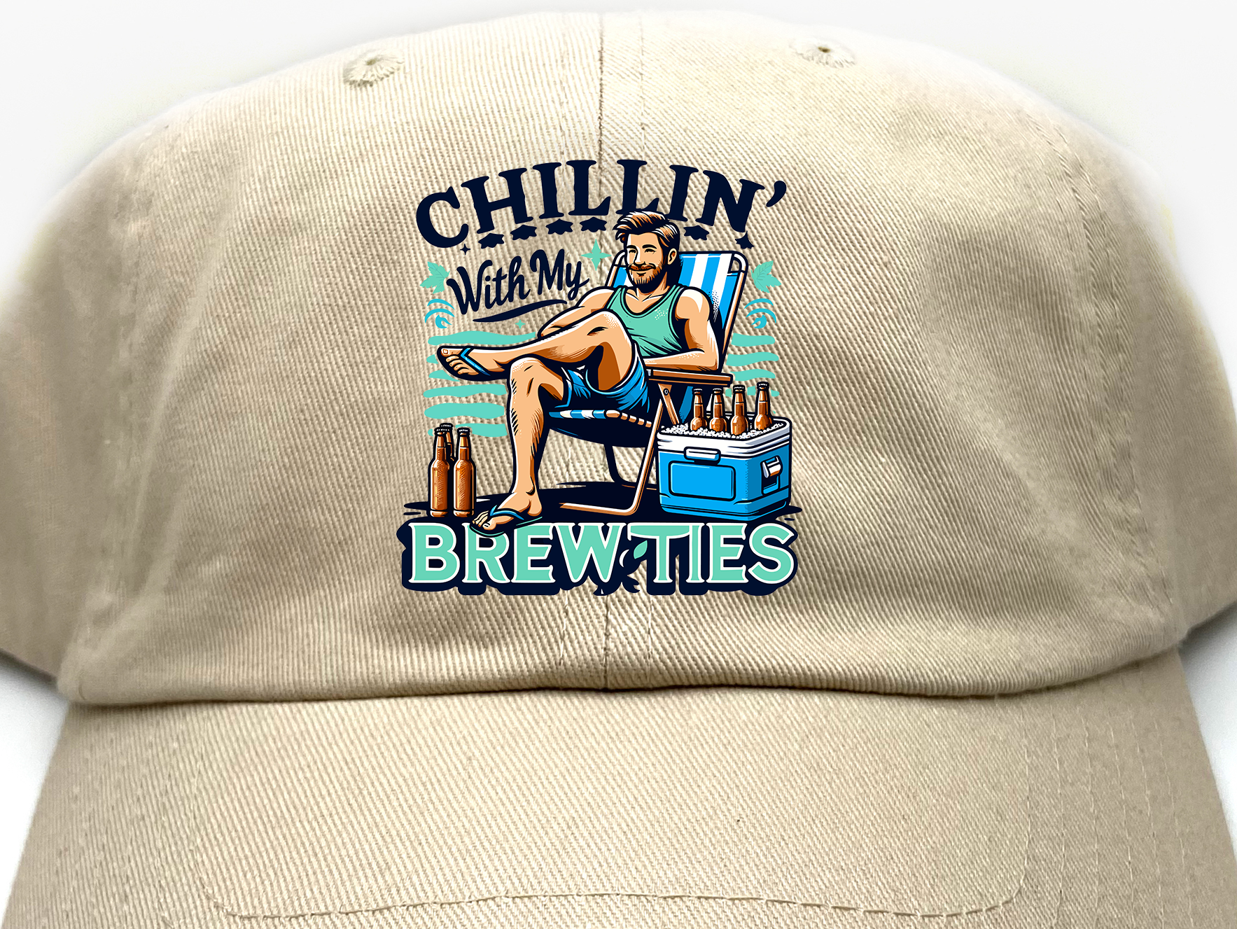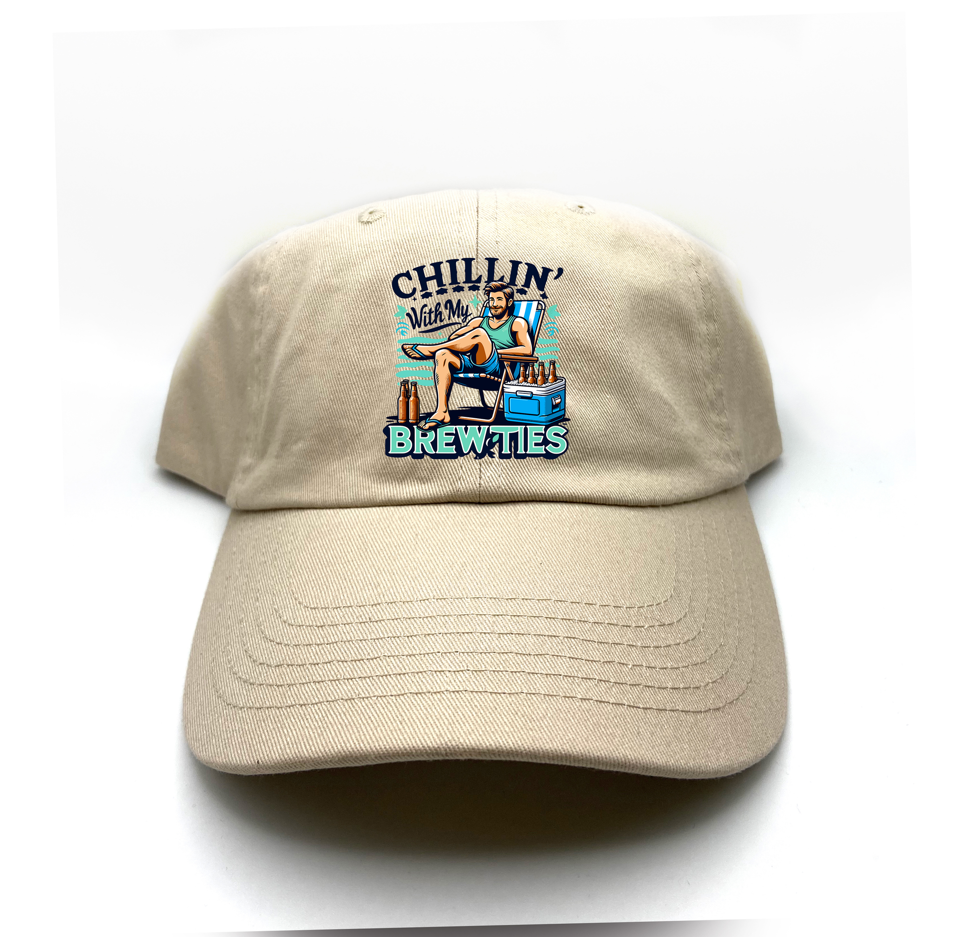 Proudly display your love of beer with the Chillin' With My Brewties Dad hat!