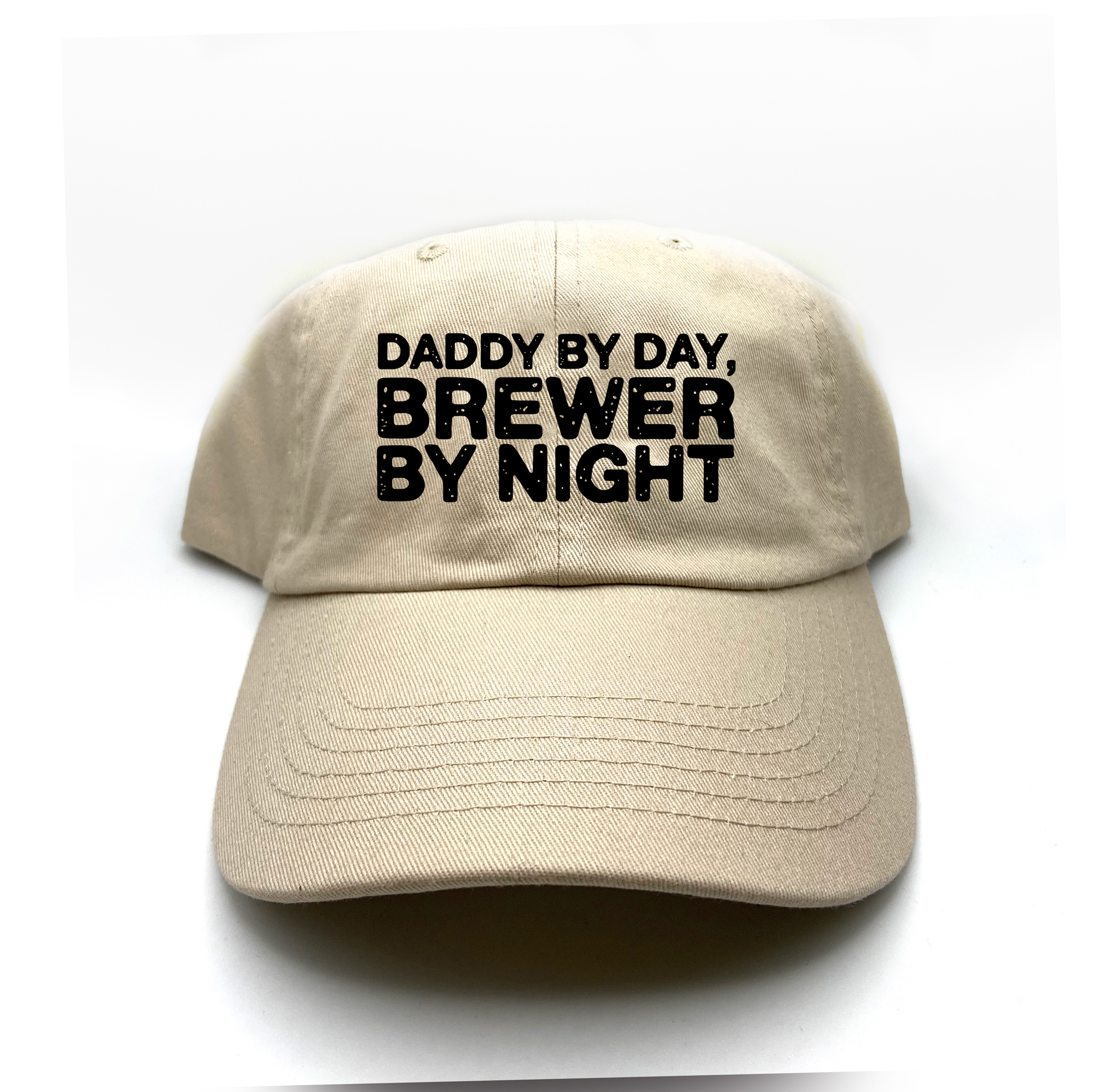 Proudly display your love of beer with the Daddy by Day, Brewer by Night Black Dad hat!
