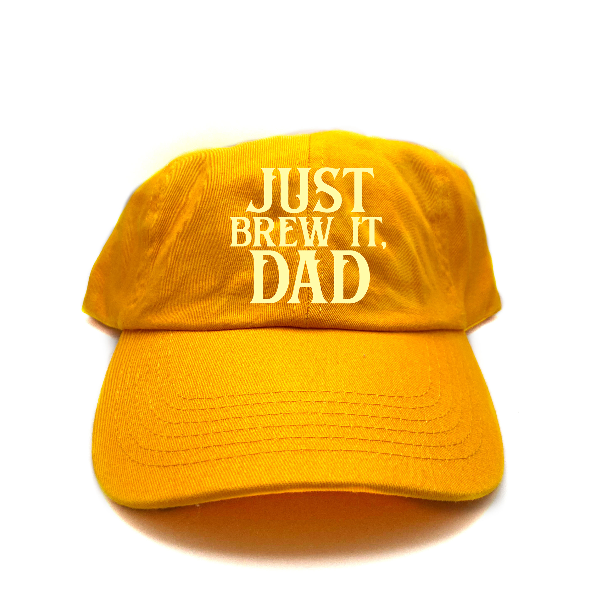 Proudly display your love of beer with the Just Brew It, Dad Yellow Dad hat!